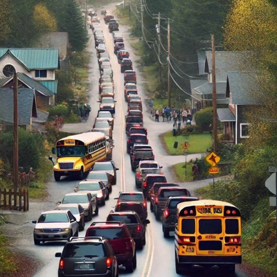 The preliminary traffic study predicts a substantial increase of 1330 new daily trips, concentrated at school drop off in the morning rush hour, 7-9 am (422 trips), and school pick up in the afternoon rush hour, 4-6 pm (90 trips). This will lead to traffic congestion on 75th Ave SE, causing potential safety issues at the light at Woodinville-Duvall Road every afternoon, as will traffic going down 240th St. SE to the 522 Interchange.